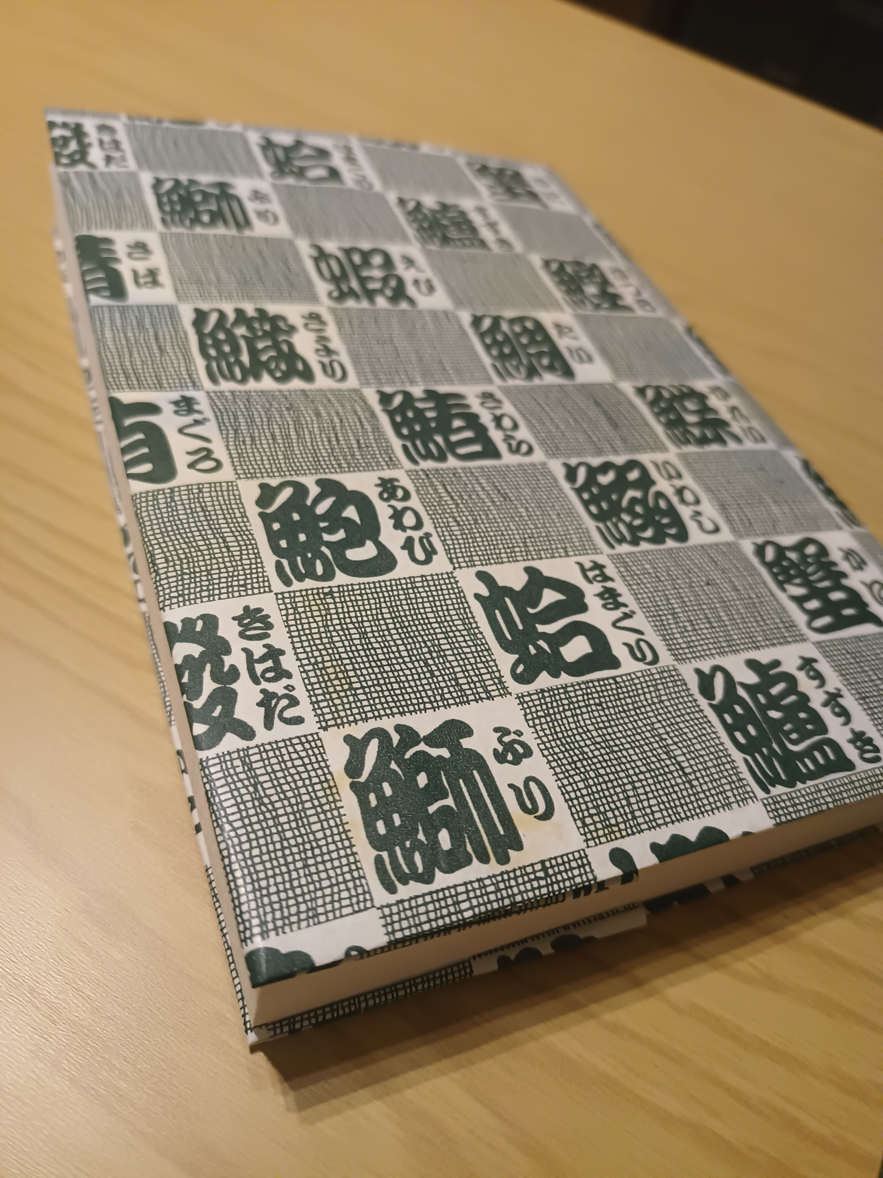本を傷つけないためにも、寿司屋さんで持ち帰りするときにもらった包装紙を巻きました。捨てずに持っていたらこんなところで使えました。しばらくはこの姿のつもりです。